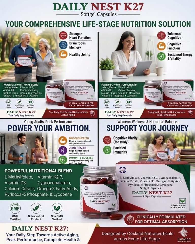 How Coral calcium + Calcitriol + Methylcobalamin + Omega-3 fatty acid + Vitamin K2-7 + Zinc Sulphate Monohydrate + L-Methyl Folate + Lycopene + Pyridoxal-5-phosphate works